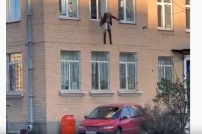Тоа можеби не би било толку чудно доколку типот не скокнеше од првиот кат врз покрив на автомобил кој бил паркиран долу, што и му го ублажи падот.