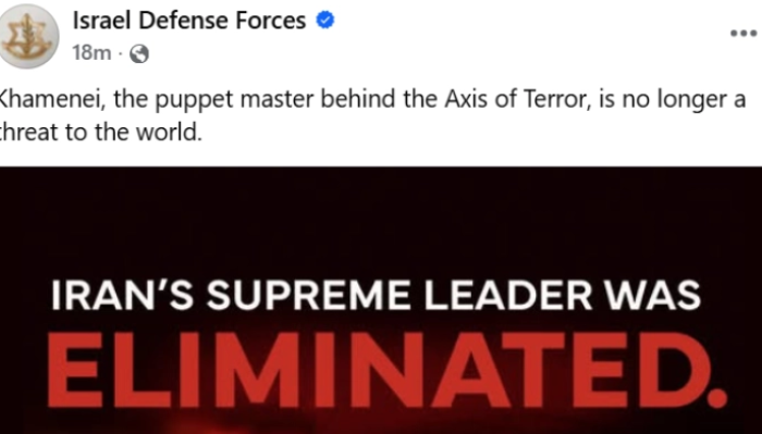Израелските одбранбени сили (ИДФ) и официјално соопштија дека го убиле иранскиот врховен водач Али Хамнеи во воздушен напад во Техеран во текот на вчерашниот ден.