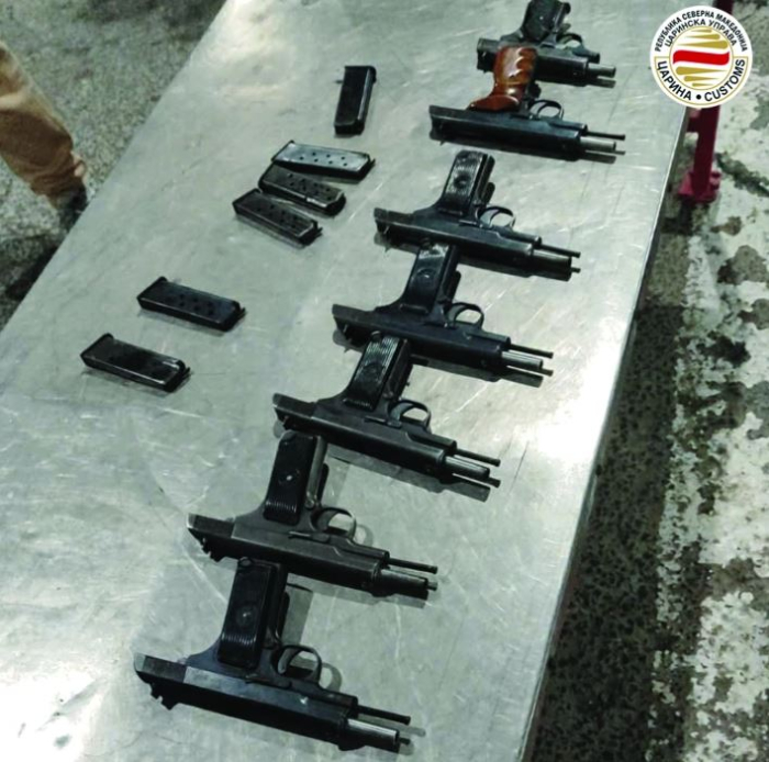 Спречен e обид за сериозен меѓународен криминал, при што запленети се девет пиштоли од кои пет со голема пробивна моќ, а едно лице, македонски државјанин, е лишено од слобода и се наоѓа во притвор.