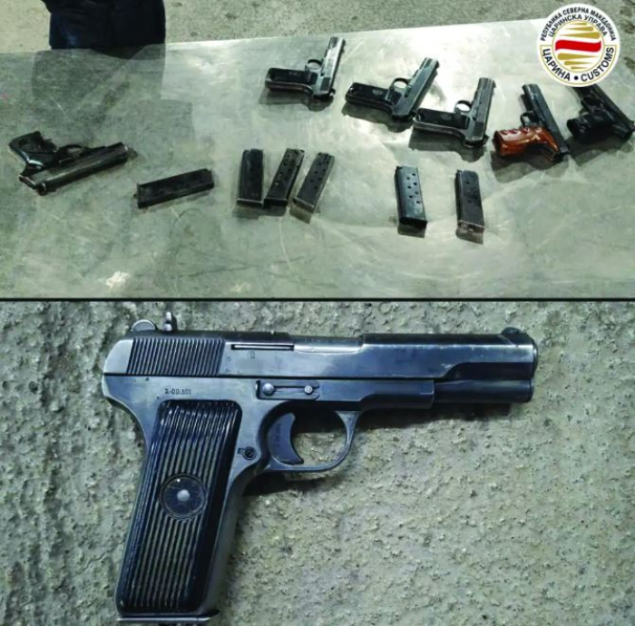 Како што соопштија од Царинската управа, делото е откриено во вторникот вечерта од страна на царински службеници на граничниот премин Богородица, на излез од државата, при детален претрес на возило со македонски регистарски таблички, управувано од македонски државјанин при што во кровот, помеѓу лимот и тапацирот, се пронајдени пиштоли од марката „Црвена Застава“.