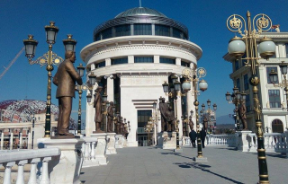 Искршена стаклена врата на Бугарската амбасада во Скопје