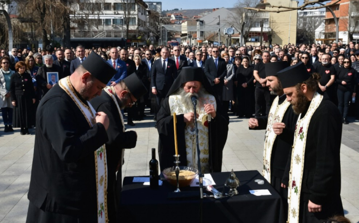 Молитва за упокоените одржа митрополитот на Брегалничката епархија, господин Иларион, во сослужение на свештеници од кочанскиот црковен храм „Св. великомаченик Ѓеорги“, денеска, во Паркот на револуцијата во Кочани.