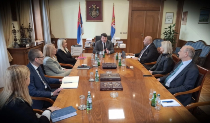Делегација на Уставниот суд претставувана од претседателот Дарко Костадиновски и судиката Ана Павловска-Данева, остварија работна средба со претседателот на Уставниот суд на Србија Владан Петров и судијките Добросав Миловановиќ и Наташа Плавшиќ.