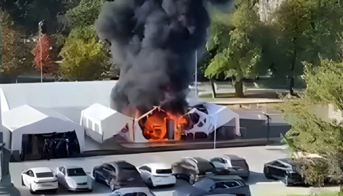 Голеп пожар избувна претпладнево пред српскиот Парламент во Белград каде се поставени шатори од лица кои се спротиставуваат на блокадите од студентите.