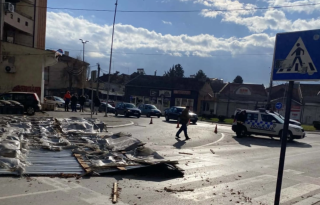 Од силен ветер падна парче лим од покрив на зграда во центарот на Куманово