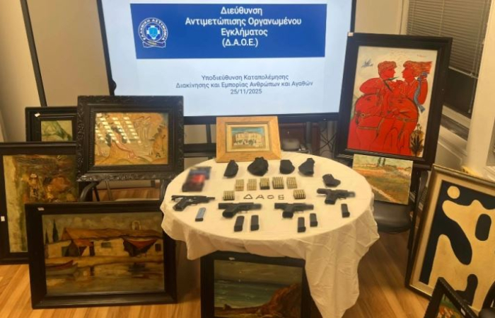 Двајцата Грци на возраст од 42 и 57 години биле уапсени во областа Атика, поширокиот регион на Атина, а при претрес на нивните домови биле откриени уметничките дела, но и четири пиштоли и куршуми.